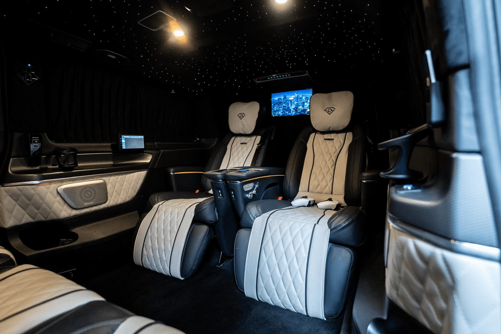 The Mercedes-Benz V-Class elevates group travel into a smooth, comfortable, and premium experience. Designed for families, executives, and VIP journeys, it offers a refined cabin with plush seating, generous space, ambient lighting, and modern comfort features tailored for both relaxation and productivity.